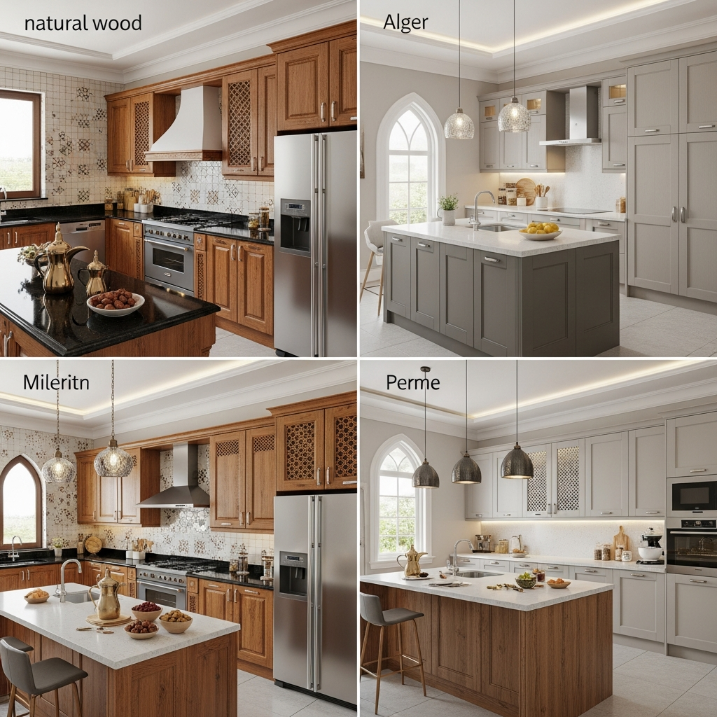 - مطابخ خشب كاملة (طبيعي أو MDF)